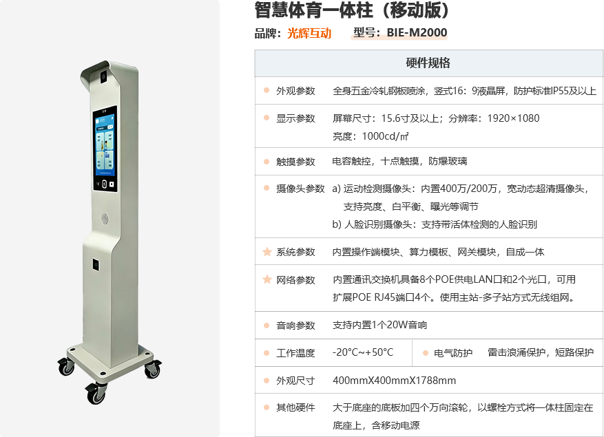 11、支持终端、运动两个维度的运动参数管理,为不同的一体柱分配不同的运动项目,不同的一体柱的个性化默认配置独立保存,重启、复位即可恢复默认配置;