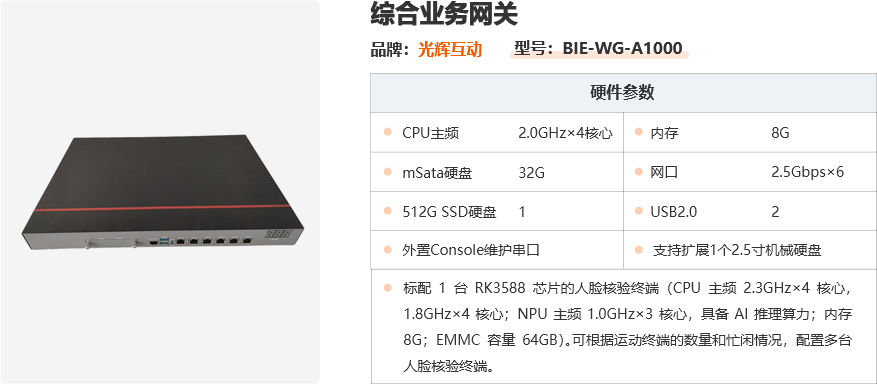 c: 网关模块: 国产芯片,CPU≥8核64位,主频最高达2.4Ghz,1T数据存储空间。